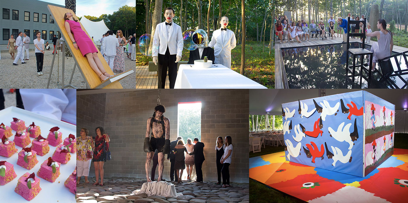 In celebration of the Watermill Center summer benefit’s two decades of history on Saturday night, Wilson staged an homage to Hunter, bringing to life the self-taught African American folk artist’s body of work—but in a very Watermill way. True to his word (“We always try to do what no one else is doing.”), Wilson transformed a Hunter canvas of red and white angels flying over a field of green into this year’s theme: “Devil’s Heaven.”