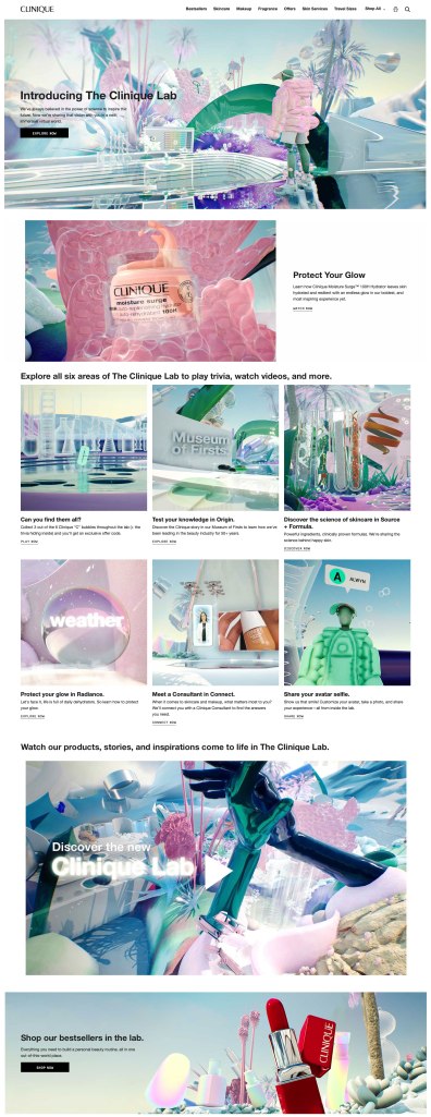 The Clinique Lab allowed users to create a custom avatar and explore the brand’s story and products through interactive experiences, including gamification, product storytelling, direct engagement with Clinique Consultants, and immersive shopping.